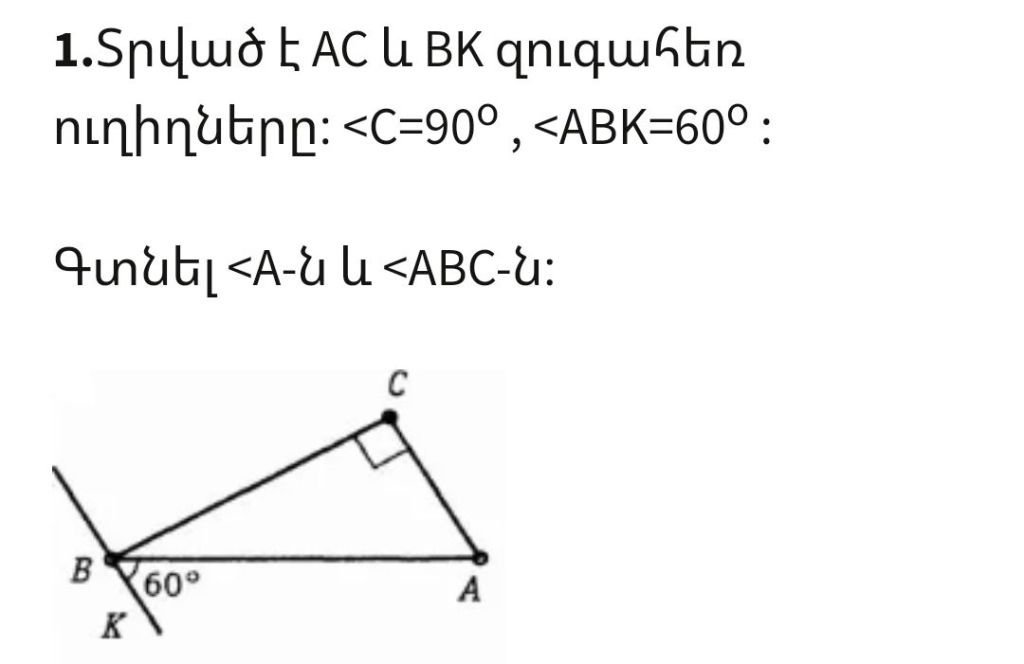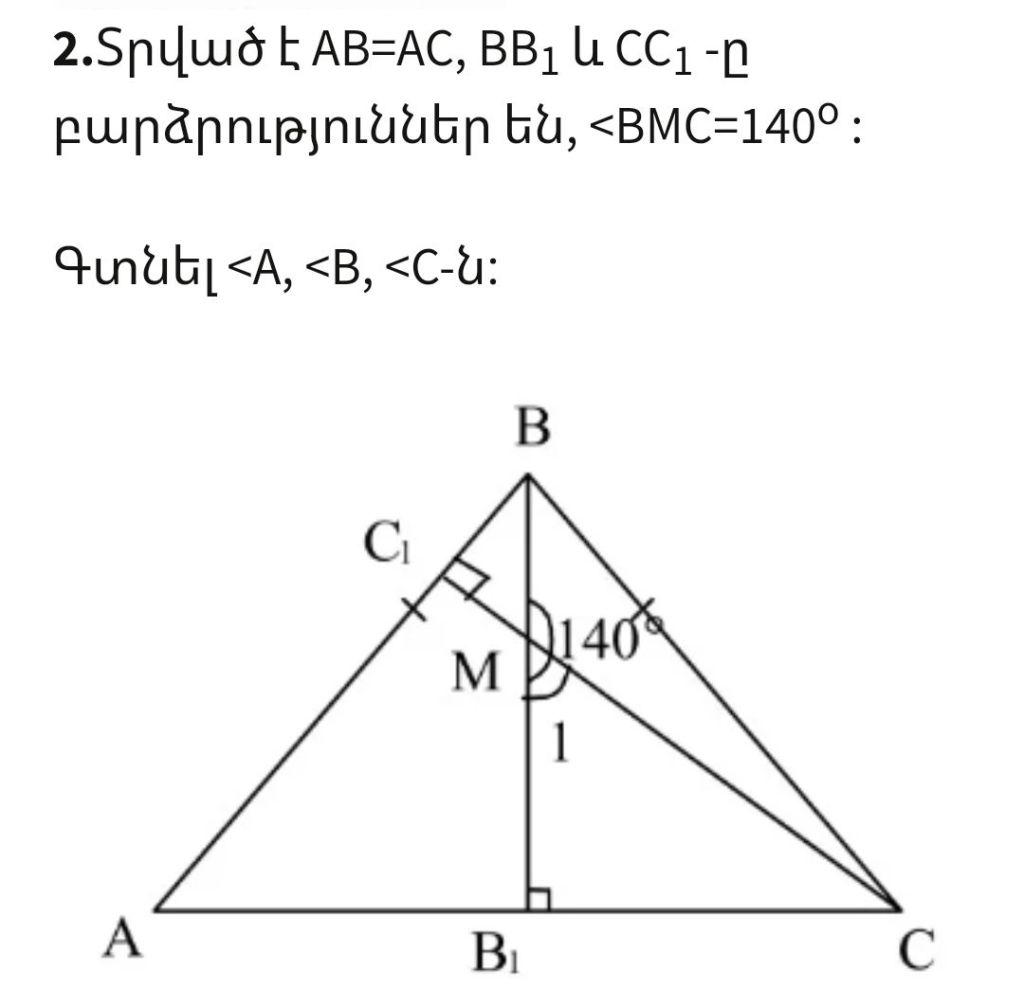Posted in Երկրաչափություն 7 Երկրաչափություն Posted on May 17, 2024 by mariamdalaqyan BK||AC=> <ABK=<CAK 180-140=40(կից) <1=40 <B¹=90 90+40=130 <C=180-130=50 C¹=90 <A=90-50=40 Share this: Click to share on X (Opens in new window) X Click to share on Facebook (Opens in new window) Facebook Like Loading... Author: mariamdalaqyan View All Posts
