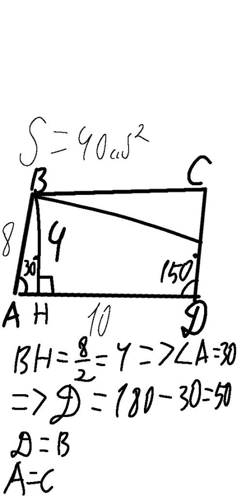 2)Գտեք զուգահեռագծի անկյունները, եթե նրա մակերեսը 40 սմ2 է, իսկ կողմերը՝ 10 սմ և 8 սմ։