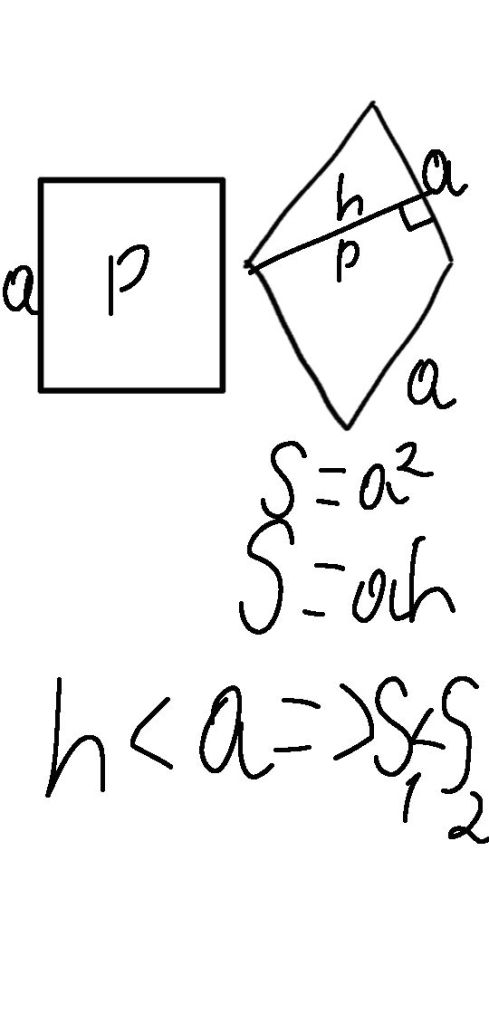 3)Քառակուսին և քառակուսի չհանդիսացող շեղանկյունն ունեն հավասար պարագծեր։ Համեմատեք այդ պատկերների մակերեսները։