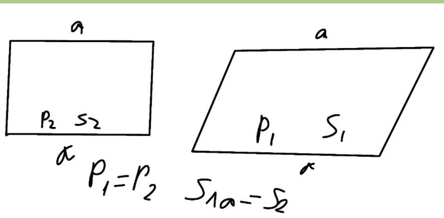 5)Համեմատեք ուղղանկյան և զուգահեռագծի մակերեսները, եթե նրանք ունեն հավասար հիմքեր և հավասար պարագծեր։