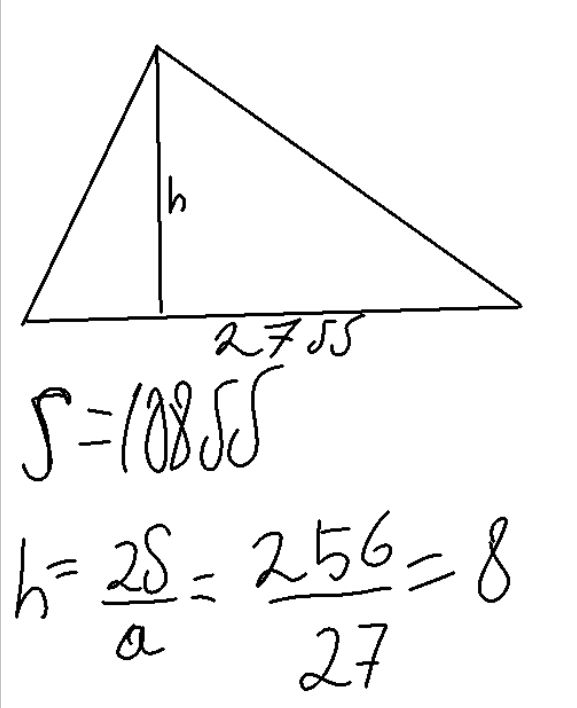 2)Եռանկյան մակերեսը 108 մմ է, կողմերից մեկը՝ 27 մմ: Գտե՛ք այդ կողմին տարված բարձրությունը: