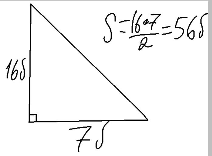 3)Ուղղանկյուն եռանկյան էջերը 7 մ և 16 մ են: Գտե՛ք եռանկյան մակերեսը: