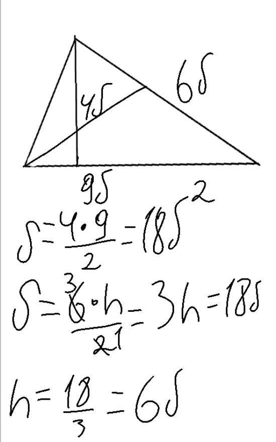 6)Եռանկյան կողմերից մեկը 9 մ է, մյուսը՝ 6 մ: Առաջին կողմին տարված բարձրությունը 4 մ է: Գտեք երկրորդ կողմին տարված բարձրությունը:
