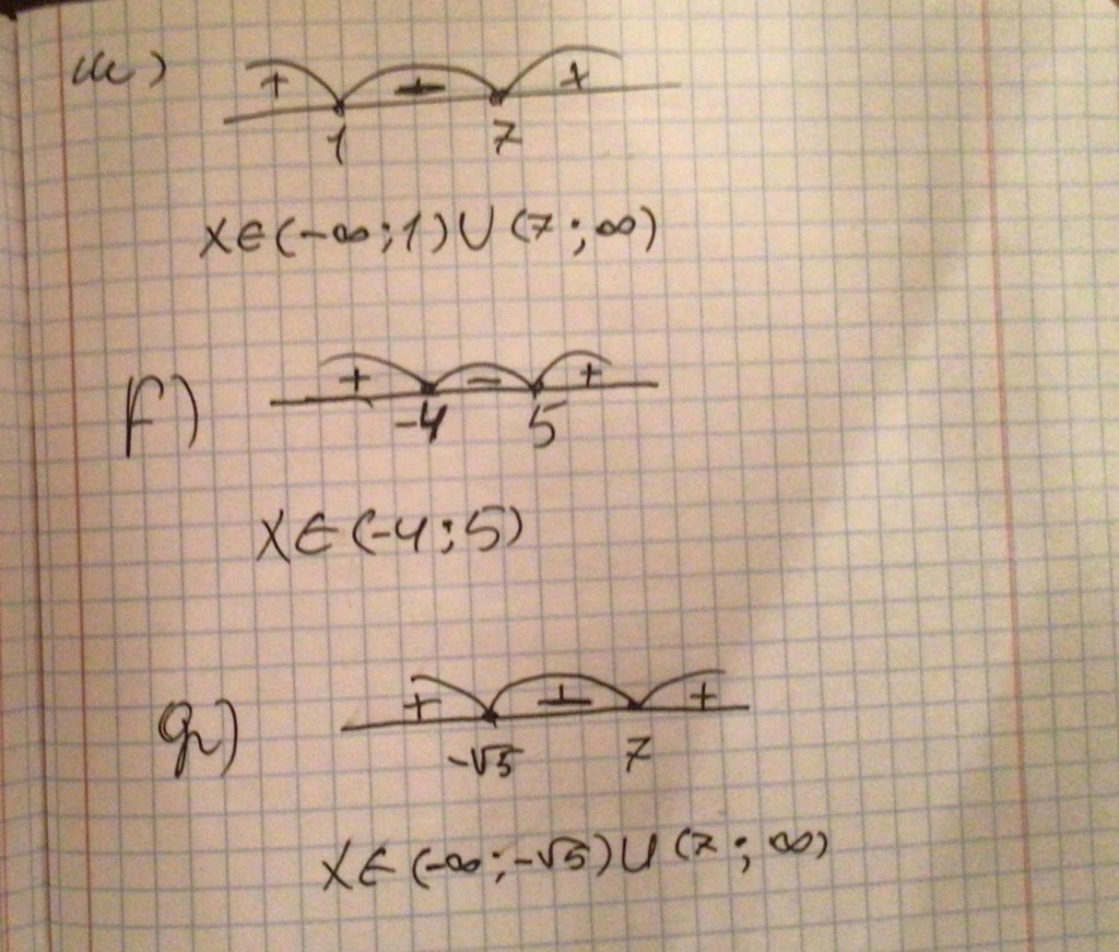 1)Գտե՛ք արտահայտության նշանապահպանման միջակայքերն ու այդ միջակայքերում արտահայտության նշանը.