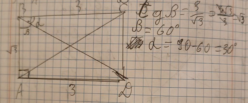 4)C ուղիղ անկյունով ABC եռանկյունում AB = 18դմ, AC = 6դմ: Գտեք A անկյան կոսինուսը: